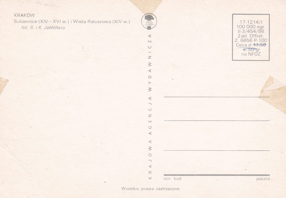 Rozmiar pocztówki: 14,8x10,5 cm
