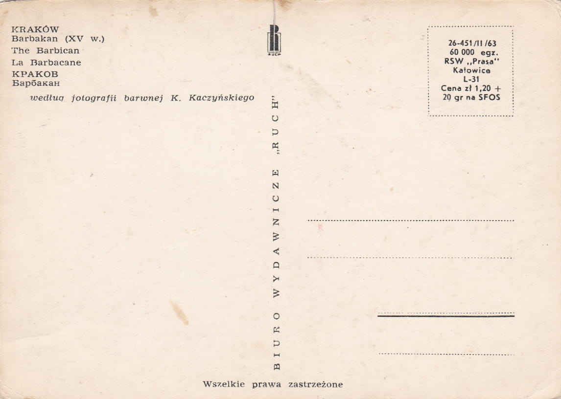 Rozmiar pocztówki: 14,8x10,5 cm