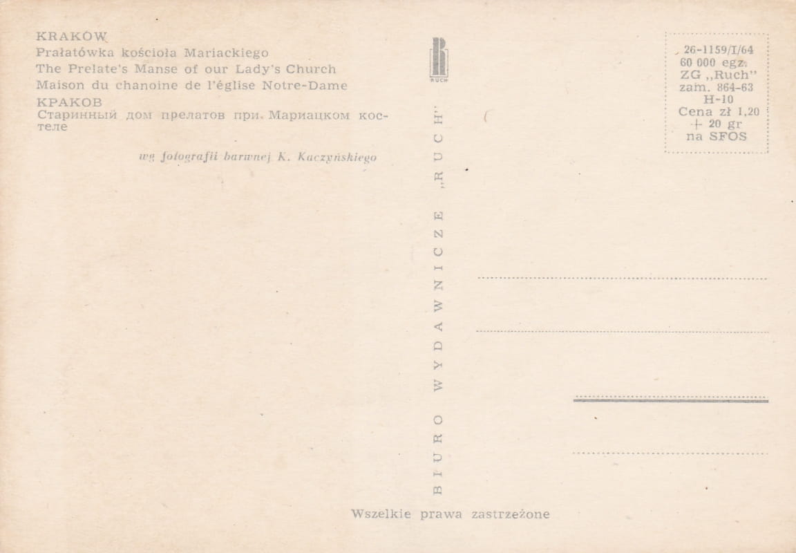 Rozmiar pocztówki: 14,8x10,5 cm