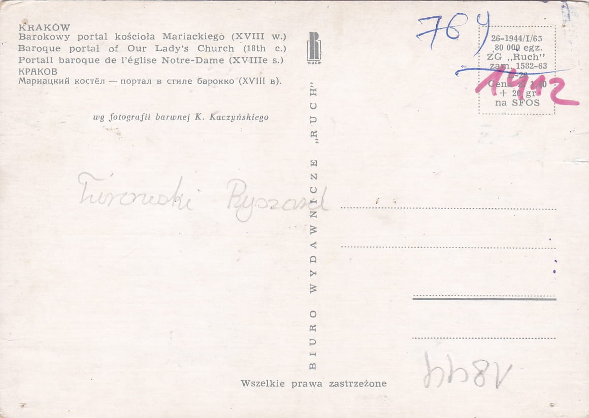 Rozmiar pocztówki: 14,8x10,5 cm