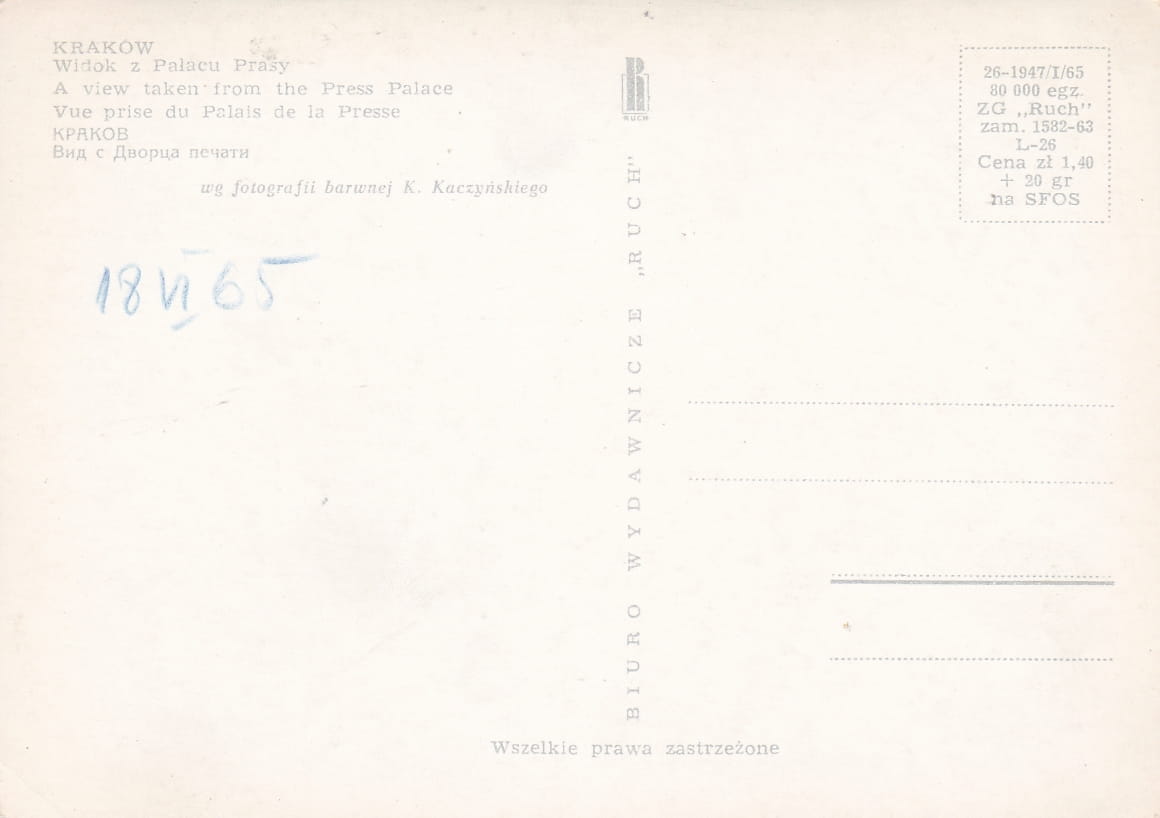 Rozmiar pocztówki: 14,8x10,5 cm