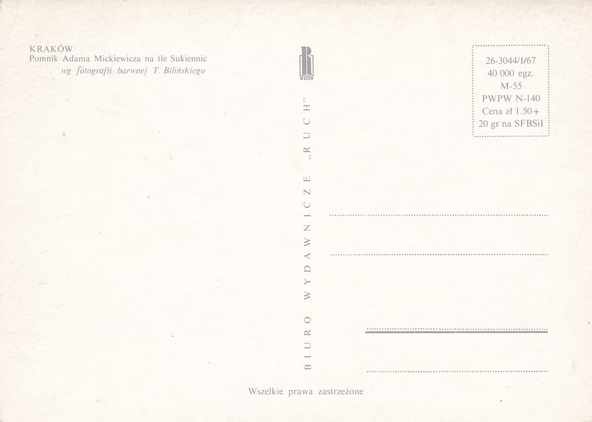 Rozmiar pocztówki: 14,8x10,5 cm