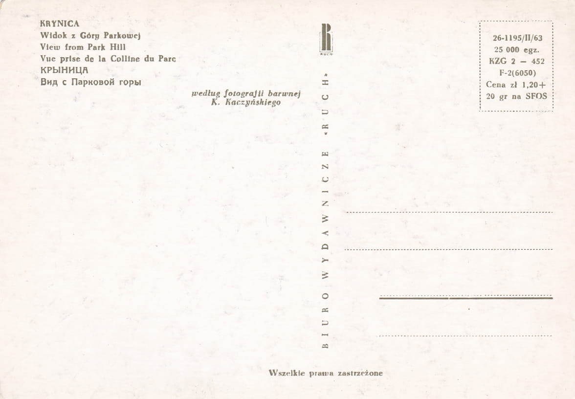 Rozmiar pocztówki: 14,8x10,5 cm
